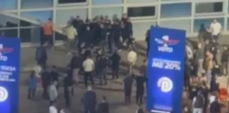 Grushte dhe shqelma, sherr masiv në takimin e Berishës në Elbasan