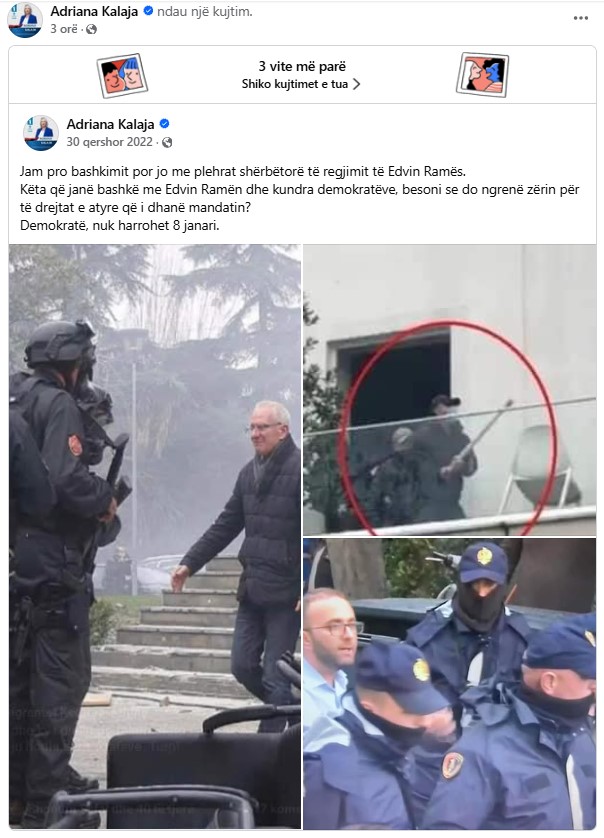Adriana Kalaja ka ripublikuar një postim të tre viteve më parë, në periudhën kur Partia Demokratike ishte në kulmin e përplasjeve.