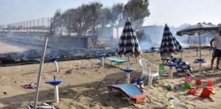 Zjarr në plazh, njerëzit futen në det, shpëtohen me helikopter
