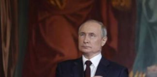 Me qiri në dorë, Vladimir Putin merr pjesë në meshën e...