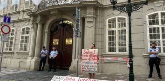 Aktivistë çekë në mbështetje të Kosovës, protestojnë para Ambasadës së Serbisë...