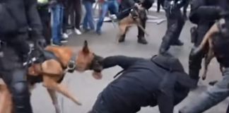 Kaos në Holandë/Qeni i policisë sulmon protestuesin