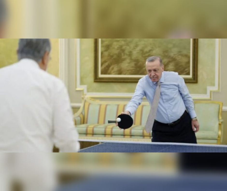 Presidenti rus, Vladimir Putin po takohet me homologun e tij turk, Recep Tayyip Erdogan në Kazakistan. Përpara se Erdogan të futej në takim, disa foto që tregojnë presidentin turk duke luajtur ping-pong, u shpërndanë për median.