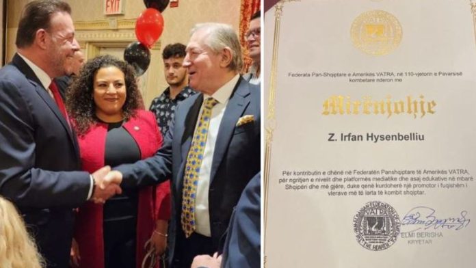 Federata Pan-Shqiptare e Amerikës Vatra ka nderuar me titullin “Mirënjohje”, Presidentin e “Hysenbelliu Group”, Irfan Hysenbelliu në një ceremoni të zhvilluar në Nju Jork me rastin e 110 vjetorit të Pavarësisë.