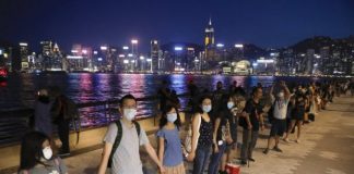 Hong Kong, mijëra njerëz formojnë një zinxhir njerëzor