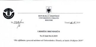Universiteti i Tiranës rifillon në 10 dhjetor
