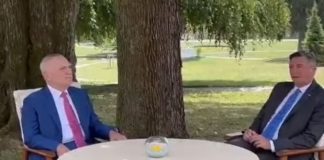 Meta takon homologun slloven, shfaqen duke biseduar në hijen e pemës...