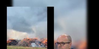 Bie rrufeja dhe shkrumbon stallën e bagëtisë në një fshat të...