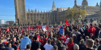 Emigrantët shqiptarë “rrethojnë” parlamentin britanik: Braverman të japë dorëheqjen, ne nuk...