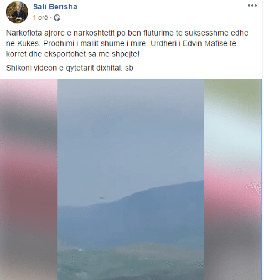 “Narkoflota ajrore e narkoshtetit po ben fluturime te suksesshme edhe ne Kukes. Prodhimi i mallit shume i mire..Urdheri i Edvin Mafise te korret dhe eksportohet sa me shpejte! Shikoni videon e qytetarit dixhital”, përcjell këtë denoncim të rëndë ish-kryeministri Berisha në faqen e tij në FB, shoqëruar edhe më një video ku duken avionët transportues.