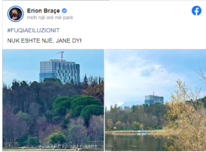 AktualitetkomentLAJMEPolitikë Fuqia e iluzionit/ Braçe godet Erion Veliajn për betonizimin e Tiranës 04/01/2022 0 152 FacebookTwitterPinterestWhatsApp Me anë të një postimi në Facebook, Erion Braçe ka sulmuar Edi Ramën dhe Erion Veliajn për lejet e kullave që kanë dhënë në Tiranë. Braçe ndan fotot e ndertesave teksa shkruan: #Fuqiaeiluzionit Nuk është një, janë dy!’. Zjarr Tv Ad