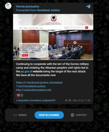 Grupi “Homeland Justice” pretendon se ka kryer sulm kibernetik në sistemet e Gjykatës së Lartë dhe Prokurorinë e Përgjithshme