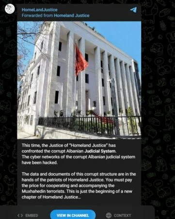 Grupi i hakerave “Homeland Justice”, pas Kuvendit të Shqipërisë dhe Postës Shqiptare, pretendon se sot kanë sulmuar edhe sistemet e Gjykatës së Lartë dhe Prokurorinë e Përgjithshme në Shqipëri.