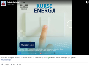Në kushtet e një krize globale energjitike, zëvendëskryeministrja dhe njëherësh ministrja e Infrastrukturës dhe Energjisë, Belinda Balluku udhëzon qytetarët shqiptarë që të kursejnë energji. Përmes një postimi në Facebook, Balluku shkruan se kursimi i energjisë është detyrë për çdo qytetar.