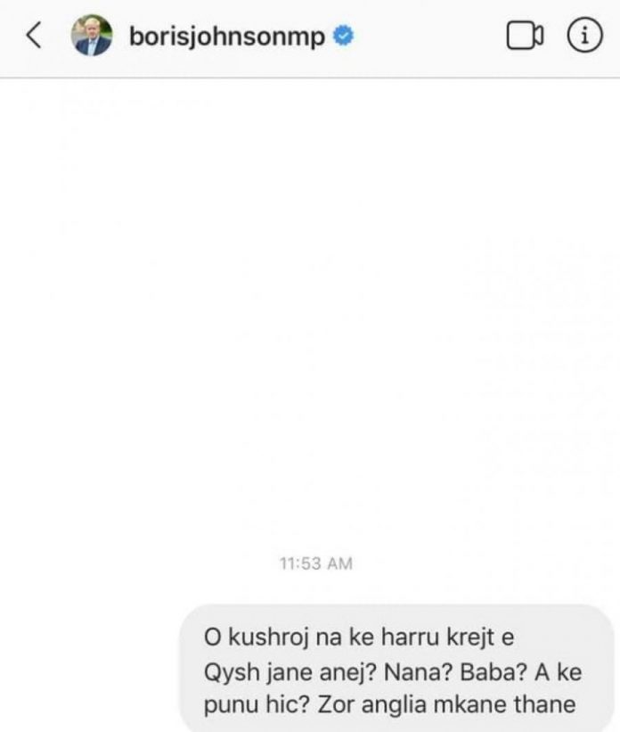 Siç shihet edhe në foton e mëposhtme, një shqiptar ka zgjedhur ti shkruajë drejtpërdrejtë Johnson, përmes rrjeteve sociale.